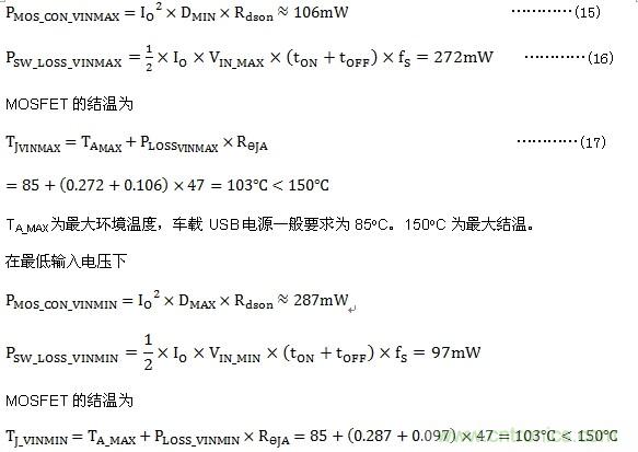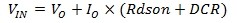 其中, IO 為輸出電流, Rdson為上管MOSFET的導通電阻,DCR 為電感的直流阻抗。