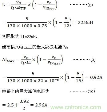 續(xù)流二極管上的最大反向壓降為VINMAX ,流過二極管的最大峰值電流為2.96A, 流過二極管的最大平均電流為
