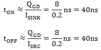 由QGD可先計算出MOSFET的開通關斷時間為: