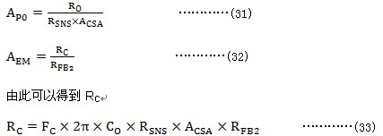Fc為系統(tǒng)開環(huán)傳遞函數(shù)的穿越頻率,通常取為開關頻率的1/6以下, FRC為主電路傳遞函數(shù)的極點的頻率, AP0 為主電路傳遞函數(shù)的低頻增益, AEM 為反饋電路傳遞函數(shù)的中頻增益。