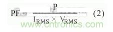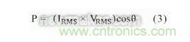 PF還等于線(xiàn)路電流與電壓之間的相角(θ)的余弦值;從這個(gè)角度來(lái)講,式2可以重新寫(xiě)成以下形式: