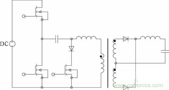 不對稱脈沖PWM 控制,其下管下降沿與上管的前沿互補,上管可實現(xiàn)ZVS。只要設(shè)計的占空比較小,無需其它措施即使工作在較高頻率下開關(guān)損耗也很小。變壓器直流偏磁,除占空比端點外,偏磁電流小于不對稱半橋。寬范圍適用性優(yōu)于傳統(tǒng)的不對稱半橋。低壓大電流的應(yīng)用場合有一定的優(yōu)勢。