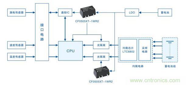 針對汽車行業(yè)的高可靠要求,以及BMS在整車系統(tǒng)中的“心臟”作用,金升陽率先推出全球范圍內汽車級DC_DC電源模塊CF0505XT-1WR2,填補了電源行業(yè)在BMS電源方面的空白,該系列產品具有以下特點: