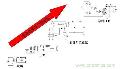 圖2. 隨著功率及功率密度的提升,半橋LLC拓?fù)涑蔀長ED路燈驅(qū)動(dòng)理想選擇