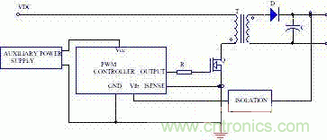 輔助電源的設計不但影響到整個電源的體積、效率、穩(wěn)定性、可靠性和成本,而且還將影響到整個開關電源的設計策略。一個重要的原因就是隔離問題。例如在離線式開關電源中,如果其內部的輔助電源和功率主回路輸入共地,那么就需要用光耦或變壓器來對輸出電壓采樣信號進行隔離,見圖1。而如果是內部輔助電源和功率主電路輸出共地,則一般不需要對電壓采樣信號隔離,這時只需對驅動信號隔離。
