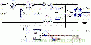 第一種方法: 傳統(tǒng)的線性電源作為輔助電源。它是用普通的矽鋼片低頻變壓器降壓后,又經過四只二極管全波整流,經C5、C6平滑濾波后加到三端穩(wěn)壓器7815輸入端。電路見圖2: