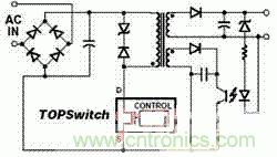 圖 5 Topswitch在單端反激式單片開關電源中的應用