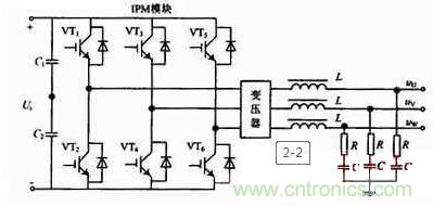 三相逆變器主電路如圖2所示,是由三相逆變橋、變壓器、濾波器組成。