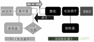 一套完整的無線充電系統(tǒng)包括TX 端和RX 端兩部分,其結(jié)構(gòu)框圖如圖1 所示。 無線充電的結(jié)構(gòu)類似于一個(gè)空心變壓器,能量傳輸通過線圈耦合的方式來實(shí)現(xiàn)。通常發(fā)射線圈及其驅(qū)動(dòng)電路被安裝在一個(gè)充電板內(nèi),接收線圈及其驅(qū)動(dòng)電路則被嵌入到需充電的設(shè)備中,如智能手機(jī)等。能量傳輸?shù)男逝c線圈之間的距離、線圈對(duì)齊的程度、線圈方向、線圈材質(zhì)、磁場(chǎng)屏蔽、阻抗匹配、發(fā)射頻率及占空比等因素有關(guān)。其中,線圈之間的距離及對(duì)齊程度對(duì)傳輸效率有極大的影響。