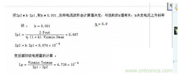 K值就是上面說的電流連續(xù)比上面計(jì)算書定義的Ip2是電流上升前沿Ip1是電流上升后沿。所以當(dāng)K=0的時(shí)候變壓器是工作在臨界模式以下的為防止計(jì)算出錯(cuò)一般習(xí)慣取0.001.