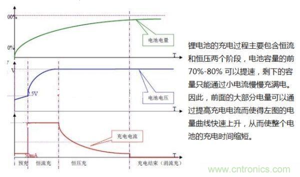 隨著對(duì)鋰電池容量的要求越來越高,鋰電池廠家也在加快新型電池的研發(fā),額定充電電壓從傳統(tǒng)的4.2V提高到4.35V,目前又出現(xiàn)了4.4V充電電壓的鋰電池,容量進(jìn)一步提高。而傳統(tǒng)的充電器輸出電壓為5V,充電控制電路會(huì)調(diào)節(jié)充電電壓和電流滿足鋰電池的充電特性。不同鋰電池的化學(xué)特性不同,因此充放電性能及安全性能也就不同,有的電池芯適合大電流充放電,而有些電池芯可以耐高電壓,所以,采用何種快速充電方式要取決于鋰電池芯的具體特性。提高充電器的輸出電壓可以在恒流階段提高充電功率,實(shí)現(xiàn)快速充電。