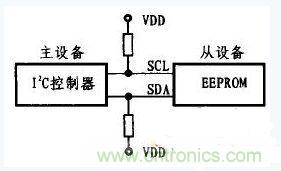 在介紹I2C總線結(jié)構(gòu)之前。要搞清楚兩個(gè)概念:I2C總線控制器和I2C設(shè)備。I2C總線控制器為微控制器或微處理器提供控制I2C總線的接口,它控制所有I2C總線的特殊序列、協(xié)議、仲裁、時(shí)序,這里指MPC8250提供的I2C總線控制接口。I2C設(shè)備是指通過I2C總線與微控制器或微處理器相連的設(shè)備,如EEPROM、LCD驅(qū)動(dòng)器等,這里指EEPROM.