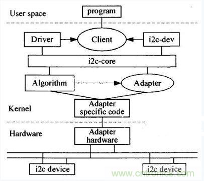 圖5 Linux內(nèi)核I2C總線驅(qū)動(dòng)程序體系結(jié)構(gòu)