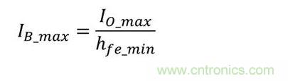 電阻器RB可為齊納二極管和晶體管基極提供電流。在運行條件下,它應提供足夠的電流。齊納二極管反向電流IZ應大于1mA,正如筆者在“齊納二極管Dz的選擇”部分所討論的。方程式2可估算出運行所需的最大基極電流: