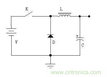 開關(guān)電源是一種比較新型的電源。它具有效率高,重量輕,可升、降壓,輸出功率大等優(yōu)點。但是由于電路工作在開關(guān)狀態(tài),所以噪聲比較大。 通過下圖,我們來簡單的說說降壓型開關(guān)電源的工作原理。如圖所示,電路由開關(guān)K(實際電路中為三極管或者場效應(yīng)管),續(xù)流二極管D,儲能電感L,濾波電容C等構(gòu)成。當開關(guān)閉合時,電源通過開關(guān)K、電感L給負載供電,并將部分電能儲存在電感L以及電容C中。由于電感L的自感,在開關(guān)接通后,電流增大得比較緩慢,即輸出不能立刻達到電源電壓值。一定時間后,開關(guān)斷開,由于電感L的自感作用(可以比較形象的認為電感中的電流有慣性作用),將保持電路中的電流不變,即從左往右繼續(xù)流。這電流流過負載,從地線返回,流到續(xù)流二極管D的正極,經(jīng)過二極管D,返回電感L的左端,從而形成了一個回路。通過控制開關(guān)閉合跟斷開的時間(即PWM——脈沖寬度調(diào)制),就可以控制輸出電壓。如果通過檢測輸出電壓來控制開、關(guān)的時間,以保持輸出電壓不變,這就實現(xiàn)了穩(wěn)壓的目的。