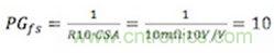 LM25116評(píng)估板的功率級(jí)跨導(dǎo)由10mΩ的電流檢測(cè)電阻(R11)和電流檢測(cè)放大器增益(10)設(shè)定,并滿足10A的電流極限。最終的功率級(jí)跨導(dǎo)等于: