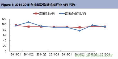 自動化產(chǎn)品在造紙及造紙機械行業(yè)的應(yīng)用十分廣泛,主要的產(chǎn)品類型有傳動系統(tǒng)、控制系統(tǒng)、執(zhí)行機構(gòu)和過程控制儀表等。2015年四季度造紙行業(yè)自動化產(chǎn)品市場規(guī)模為2.32億元,同比下滑8.5%;造紙機械行業(yè)自動化產(chǎn)品市場規(guī)模為0.41億元,同比下滑8.4%。行業(yè)API指數(shù)均小于100。受整體經(jīng)濟環(huán)境低迷、產(chǎn)能過剩矛盾、資源整合、行業(yè)結(jié)構(gòu)調(diào)整等因素影響,且隨著“新環(huán)保法”、“水十條”等環(huán)保新政的出臺和實施,造紙行業(yè)新建和改造項目減少,從而使造紙及造紙機械行業(yè)自動化產(chǎn)品市場規(guī)模萎縮。