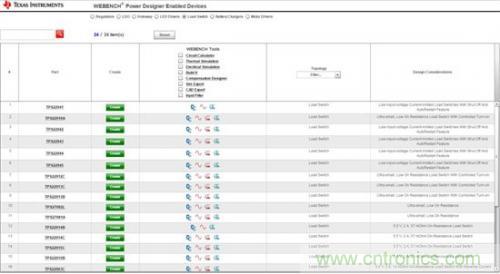 圖1:WEBENCH負載開關(guān)設備列表