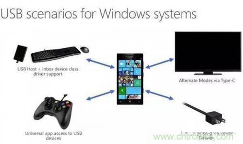 微軟Windows 10引入對(duì)Type-C的支持,不僅桌面版Windows 10原生支持USB Type-C接口,手機(jī)版Windows 10也支持,可以輕松實(shí)現(xiàn)搭載Windows 10操作系統(tǒng)的手機(jī)與USB主設(shè)備或者是USB配件兩者之間進(jìn)行數(shù)據(jù)交換以及視頻共享。例如:手機(jī)與USB外圍設(shè)備交互數(shù)據(jù),支持XboxOne遙控器、鼠標(biāo)、鍵盤、插座以及使用USB Type-C接口外接顯示器或電視等,Type –C或?qū)㈤_(kāi)創(chuàng)連接新模式。