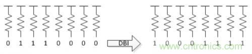 所以,一個降低DDR4系統(tǒng)功耗的方法是,盡量加大DDR4輸出高的數(shù)量。這個就是為什么DDR4中多了“DBI管腳”。舉個例子,當8bit lane中有至少有5個DQ都是低時,所有的Bit將會被翻轉(zhuǎn),并且DBI(Data Bus Inversion)置低,用來指示數(shù)據(jù)線的反轉(zhuǎn)。通過這個方法,總共9個信號中(8個DQ和1個DBI),總有至少5個是被驅(qū)動為高電平。如果原始的數(shù)據(jù)中有4個或者更多的信號被驅(qū)動為高時,那么DBI信號也將會設(shè)為高,同樣,還是9個里面至少有5個為高。這樣的話,在每一個數(shù)據(jù)傳輸?shù)倪^程中,都是至少有5/9的數(shù)據(jù)是高電平,可以在一定程度上降低了功耗。
