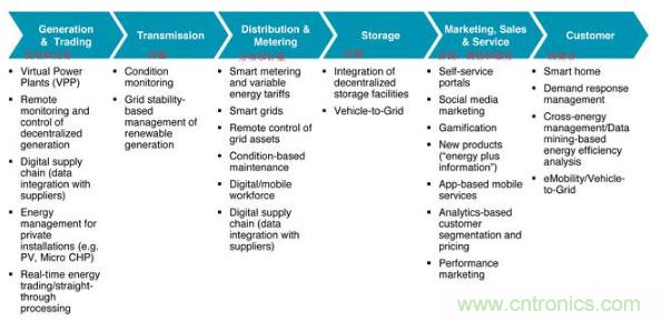 利用新的信息和通信技術(shù)來實現(xiàn)能源公司的產(chǎn)品和服務,價值鏈(從發(fā)電廠到消費者)以及內(nèi)部支持功能(控制,采購,人力資源等)的綜合轉(zhuǎn)型,以滿足相關(guān)客戶的期望。