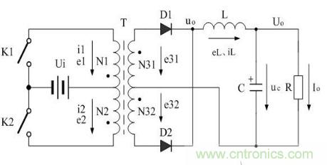 由于它的兩個控制開關K1和K2輪流交替工作,其輸出電壓波形非常對稱,并且開關電源在整個工作周期之內(nèi)都向負載提供功率輸出,其輸出電流瞬間響應速度很高,并且它是所有開關電源中電壓利用率最高的開關電源,它在輸入電壓很低的情況下,仍能維持很大的功率輸出,所以被廣泛應用于低輸入電壓的DC/AC逆變器,或DC/DC轉(zhuǎn)換器電路中。