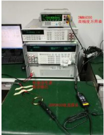 精度測(cè)試所使用試儀器為FLUKE5720校準(zhǔn)器、六位半萬(wàn)用表DMM6000。測(cè)試步驟,校準(zhǔn)器FLUKE5720輸出不同的被測(cè)電流值,萬(wàn)用表讀取電流探頭的響應(yīng)電壓值。