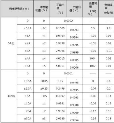 ZCP0030-50標(biāo)稱直流精度為1%rdg±1mV,實(shí)測(cè)精度如表1所示。