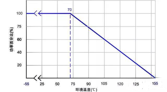 而最大工作電壓是在額定功率下,該電阻可以承受的最大電壓。但是要注意!看下面這個圖??梢钥闯鲱~定功率是在最高環(huán)境溫度70度的條件下標注的(不同廠家,系列可能有微小區(qū)別,在設計之初和問題查找的時候應該核實清楚。)