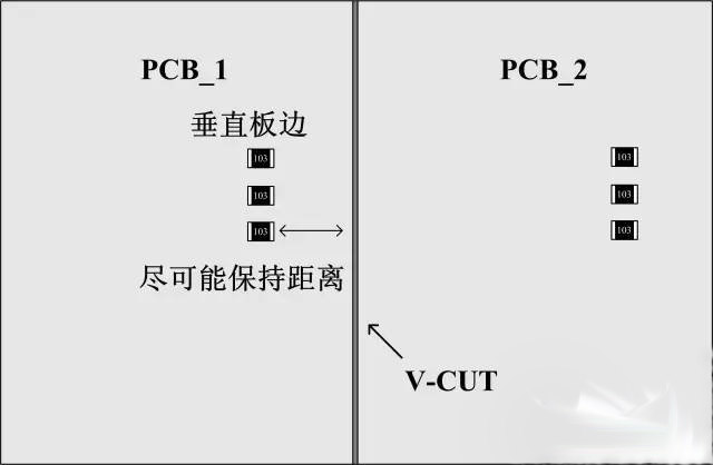 貼片電阻的另外一種常見的損壞是機械損傷后呈開路狀態(tài),后續(xù)導致電路異常(器件外觀有可能正常)。下面是幾個小建議:1、如果是手折板的話(極少使用,無法機器分析,毛刺大),貼片電阻長度方向平行于PCB板邊,零件受的應力?。蝗绻荲-CUT的話,貼片器件長度方向垂直于PCB邊,零件破裂可能性較小。2、元件如果與連接處垂直,到連接處的距離建議要≥4mm,若平行,距離建議要≥1.5mm.3、在成本允許的情況下,適當加厚PCB板厚度,特別是面積比較大的板子。(下面是兩個簡單的示意圖,實際情況請實際分。)
