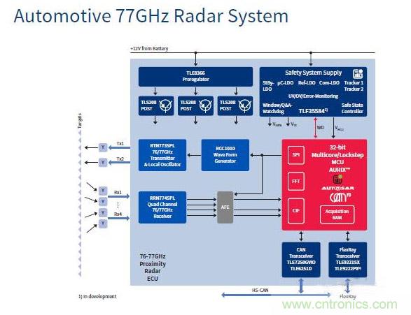 作為汽車電子、功率半導體以及智能卡芯片的全球市場領(lǐng)袖,英飛凌一直以來為汽車等工業(yè)應(yīng)用提供半導體和系統(tǒng)解決方案。英飛凌在24/77/79G雷達、激光雷達等傳感器器件及處理芯片方面都具有領(lǐng)先的技術(shù)。除此之外,在車身控制、安全氣囊、EPS、TPMS等等各方面都有自己的解決方案。