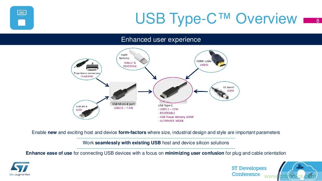 支持正反插拔 兼容 USB 3.1 標準,最快支持 10Gbit/s 傳輸 支持 USB Power Delivery 充電協(xié)議,最大可以提供 100W 的電力,并且可雙向供電 支持 DisplayPort,可以輸出音頻與視頻