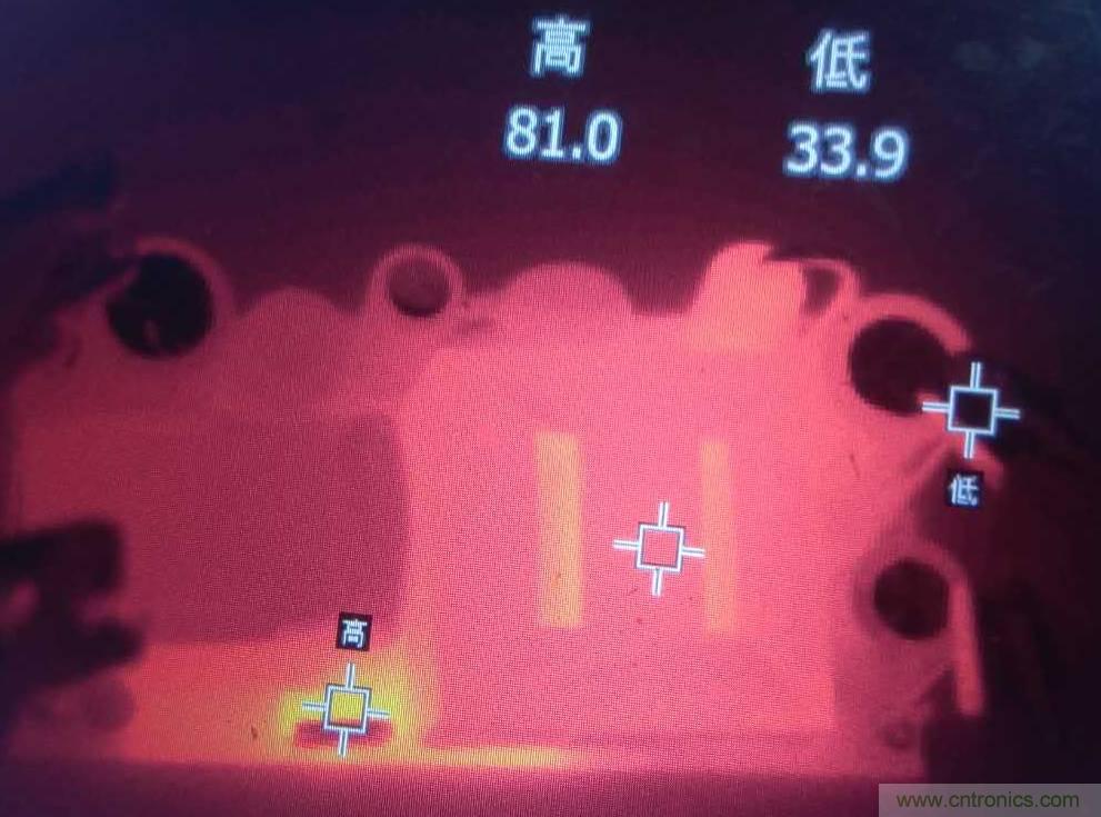 熱成像儀觀測下的發(fā)熱電源模塊如圖1所示: