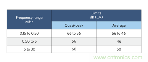 圖 1:CISPR 22 標(biāo)準(zhǔn) B 類傳導(dǎo) EMI 規(guī)范。