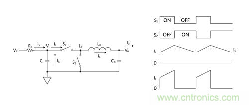 圖 5:Buck 調(diào)節(jié)器原理簡圖及其工作波形傳導(dǎo) EMI。