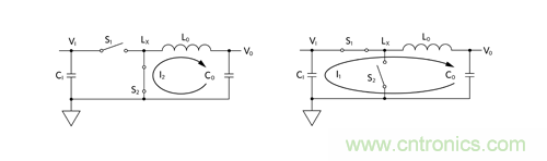 最大程度減小高 di/dt 電流環(huán)路:將 LO、CO 和 S2 正確布置在一起,最大程度減小 I2 電流環(huán)路。然后,使這一組元件靠近 S1 和 C1,最大程度減小 I1 電流環(huán)路。使用 buck 調(diào)節(jié)器 IC(即集成功率開關(guān) S1 和 S2 的 buck 控制器)時(shí),選擇具有好的引腳排列從而支持這種最小化的 IC 非常重要。相同道理也適用于使用電源模塊的情況。