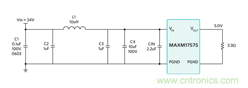 MAXM17575 本質(zhì)上具有極低的輻射 EMI。對于輻射測試,傳導(dǎo) EMI 測試中所示的輸入濾波器不需要也沒有使用。使用輸入濾波器能夠?yàn)檩椛錅y試提供更大的裕量。