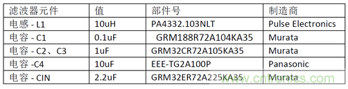 我們在設(shè)計(jì)中考慮濾波器的有效阻抗比 buck 轉(zhuǎn)換器的輸入阻抗小 10dB,大約等于輸入阻抗的三分之一。在 MAXM17575 的例子中,要求 Zo < RIN/3 = 7.6/3 = 2.5?,適用于 MAXM17575 電路穿越頻率 (45kHz)以下的所有頻率。