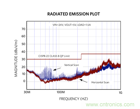 圖 3:CISPR 22 標(biāo)準(zhǔn) B 類輻射 EMI 規(guī)范。