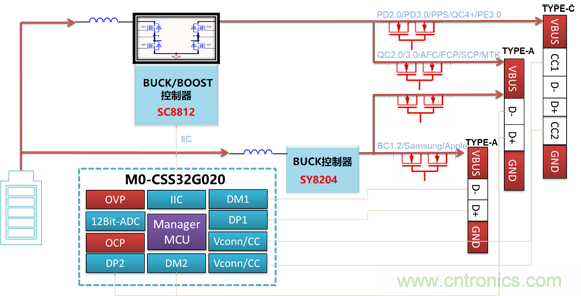 MCU+DC-DC架構(gòu)都會(huì)選用性能強(qiáng)大的MCU作為主體,以芯??萍嫉腟mart PD MCU CSS32G020為例,選用ARM® Cortex™-M0內(nèi)核,支持PD3.0 PPS等各種常用的快充協(xié)議。芯片集成多種協(xié)議PHY層,通訊內(nèi)容可通過(guò)軟件進(jìn)行升級(jí),可以適應(yīng)市面上的多種手機(jī)的快速充電需求。