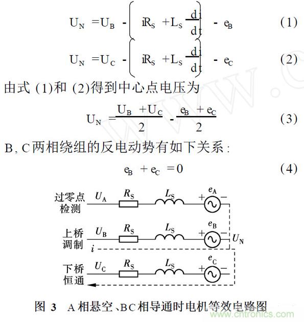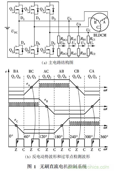 反電動勢過零點檢測方法簡單準(zhǔn)確,使用軟件算法判斷反電勢過零點. 硬件電路只要選擇阻值和功率都合適的電阻用于分壓,不需要重構(gòu)電機中心點,也不需要低通濾波器,信號沒有相位延時,也不采用比較器來檢測過零點. 硬件電路結(jié)構(gòu)簡單, 適合低成本應(yīng)用.