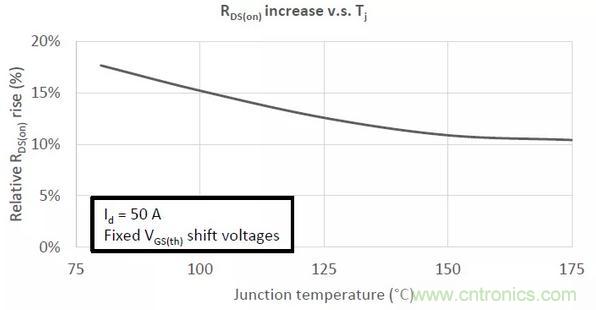 通常來說,15%的Rds(on)增量是最壞的情況。更大的增量只可能出現(xiàn)在高電流和低結(jié)溫的工況中,這在實際應用中十分罕見。