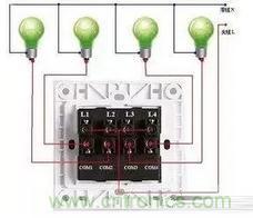 這樣的線路在電梯中常用,當(dāng)然有時(shí)臥室改的細(xì)致一點(diǎn),床左右都加上開關(guān),門口再一個(gè),也是單聯(lián)三控線路了。