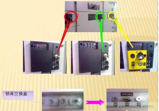 當需要斷開出線柜時,先將N電源柜、E電源柜停電,拔出KEY1、KEY2鑰匙,然后將鑰匙插入鎖具交換盒里,取出KEY3鑰匙插入出線柜聯(lián)鎖的鑰匙孔,方能操作出線柜。合出線柜的操作步驟則相反。