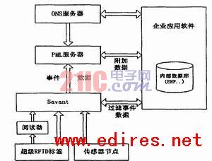在圖3中,事件管理系統(tǒng)應(yīng)用在EdgeSavant(ES)上采集標(biāo)簽解讀事件,它與解讀器應(yīng)用程序通信,管理解讀器發(fā)送的事件流。EMS體系結(jié)構(gòu)中的“解讀適配器”和“解讀器接口”可看作一個(gè)通用的接口,對(duì)于EdgeSavant來(lái)講,由于解讀適配器直接或間接的與解讀器進(jìn)行通訊,并收集解讀器探測(cè)到的事件,然后將這些事件寫入解讀器接口。對(duì)于InternalSavant來(lái)講,它是Edgesavants的父節(jié)點(diǎn)或上級(jí),IS從他的下屬EdgeSavant中采集EPC數(shù)據(jù),因此“解讀適配器”和“解讀器接口”可看作是通用的網(wǎng)絡(luò)數(shù)據(jù)訪問(wèn)接口。