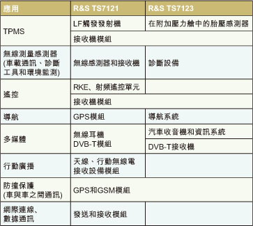 一些更新的應用包括用于確保轎車和卡車安全的胎壓監(jiān)測系統(tǒng),以及可靠地實現(xiàn)電視接收的DVB-T接收機。在某些情形下,具備射頻接口的診斷系統(tǒng)已經(jīng)被安裝在汽車維修中心和應急支援中心。其它應用還包括:用于監(jiān)測發(fā)動機艙溫度、壓力和速度參數(shù)的傳感器。