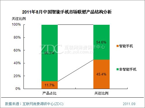 (圖)2011年8月中國(guó)智能手機(jī)市場(chǎng)聯(lián)想產(chǎn)品結(jié)構(gòu)分析