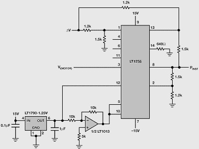 圖4所示為L(zhǎng)T1256如何結(jié)合分離的電壓電流信號(hào)產(chǎn)生電路的瞬時(shí)功率。