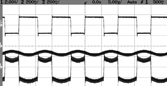 圖6b: 大電機(jī)電阻,占空比60%、感應(yīng)電阻0.1Ω。軌線1是電壓。軌線2為電流,軌線3為瞬時(shí)功率。