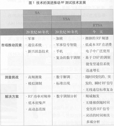 19世紀(jì)60年代,James Maxwell 通過(guò)計(jì)算推斷出存在著能夠通過(guò)真空傳輸能量的電磁波。此后工程師和科學(xué)家們一直在尋求創(chuàng)新方法利用無(wú)線電技術(shù)。接下來(lái),隨著軍事和通信領(lǐng)域技術(shù)的深入發(fā)展,20世紀(jì)無(wú)線電技術(shù)一直在不斷創(chuàng)新,技術(shù)的演進(jìn)也推動(dòng)著RF測(cè)試技術(shù)向前發(fā)展(見(jiàn)圖1)。從軍用的跳頻電臺(tái)、雷達(dá)到RFID,第三代移動(dòng)通信、藍(lán)牙、WLAN,各種微功率發(fā)射裝置等,瞬態(tài)信號(hào)如今無(wú)處不在。瞬態(tài)信號(hào)存在的普遍性使得技術(shù)人員需要有效的儀器對(duì)其進(jìn)行捕獲、存儲(chǔ)并回放分析。另外,監(jiān)測(cè)間歇性干擾或頻譜使用情況等也需要一種有效的手段來(lái)實(shí)現(xiàn)“寬帶實(shí)時(shí)監(jiān)測(cè)”。